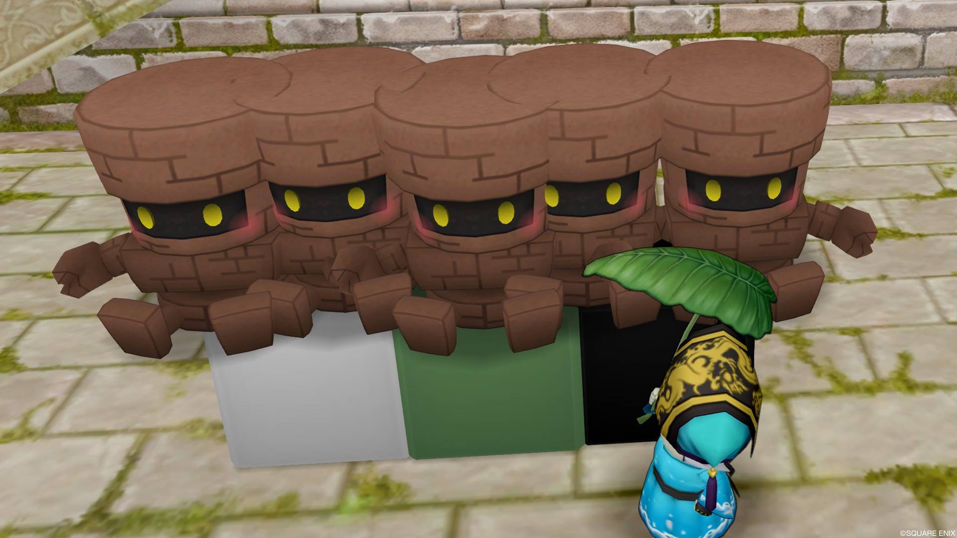 ゴーレム人形・小は頭が平らなのでわかりやすいんですよね。他にもっと安価でわかりやすい物あるかもしれませんが、私がゴーレム好きなので採用してるとこもあります。