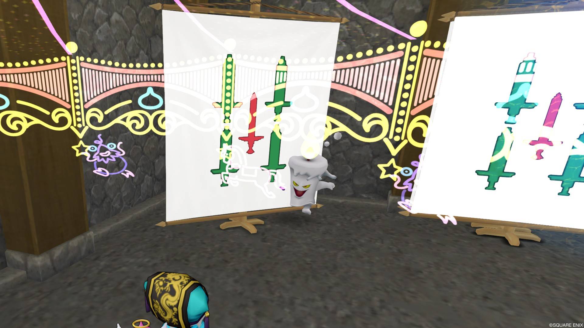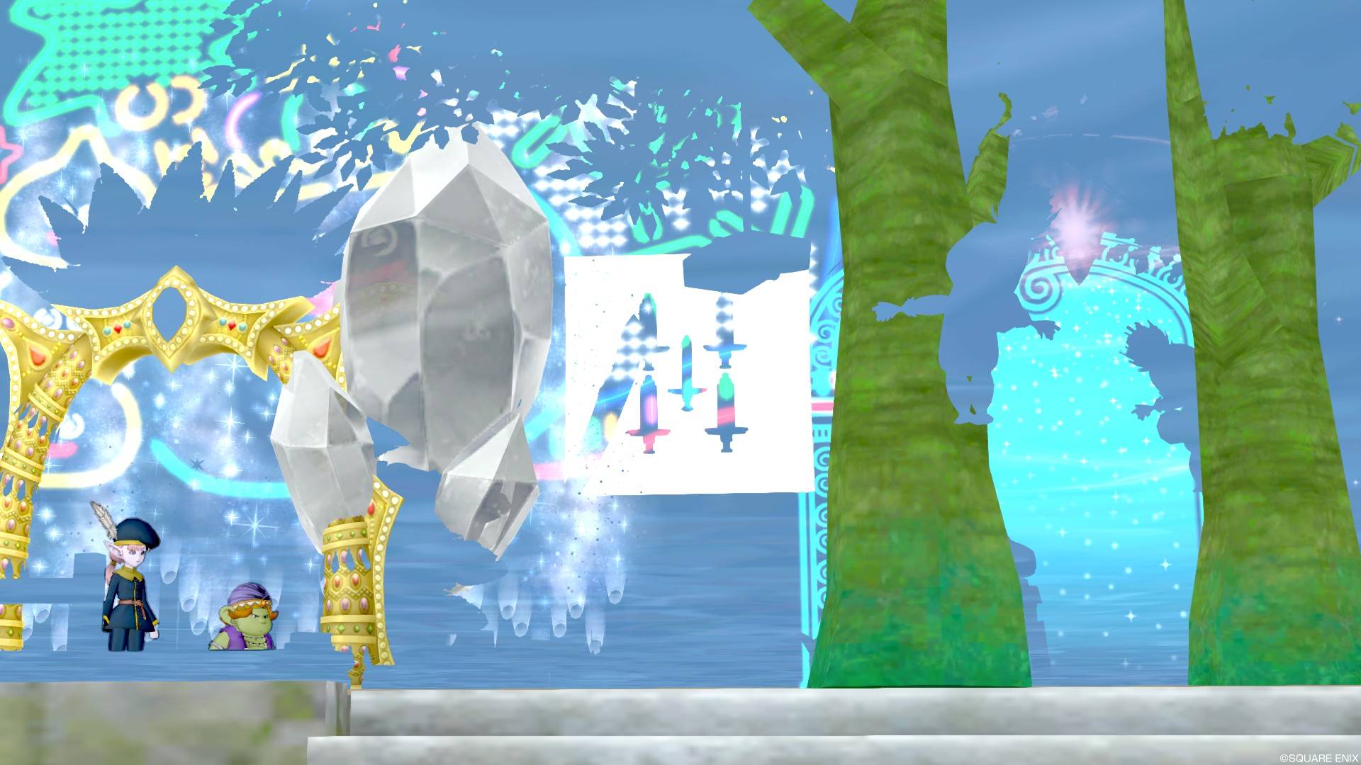 光線が降り注いでるのはルミナスライトシャワーっていう課金家具ですね。