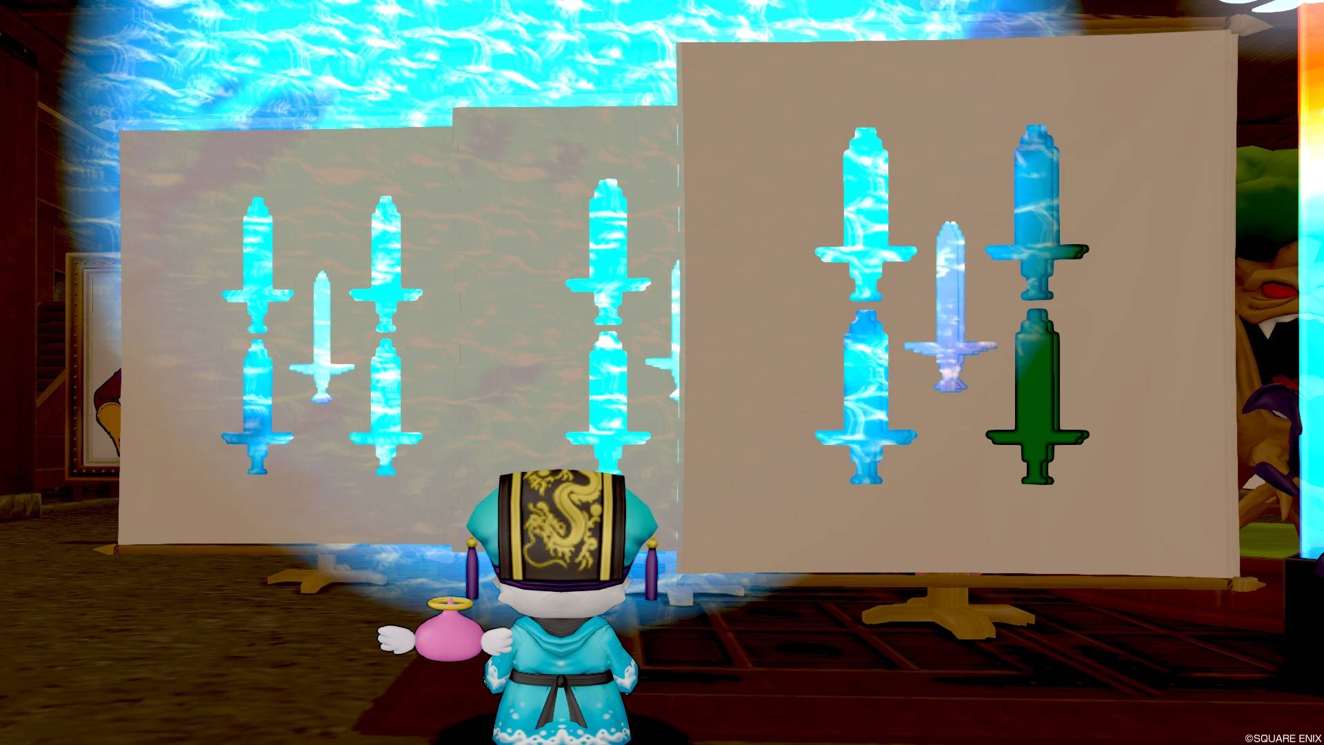見た感じ銀河のカーテンに水面投影機とか重ねた時と同じ現象だね。回転木馬モビール系も水面投影機と同じ性質持ちだったはず。