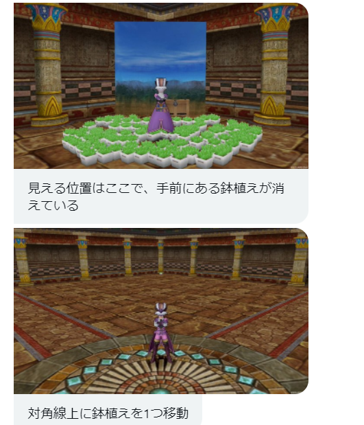 写真は鉢植えだけど、柱や天井家具でも同じ。視点の高さを変えても同じ 続 https://t.co/tfCyjGnN22 pic.twitter.com/2lPTUi5hpv— しえん (@dqxsien) April 17, 2022